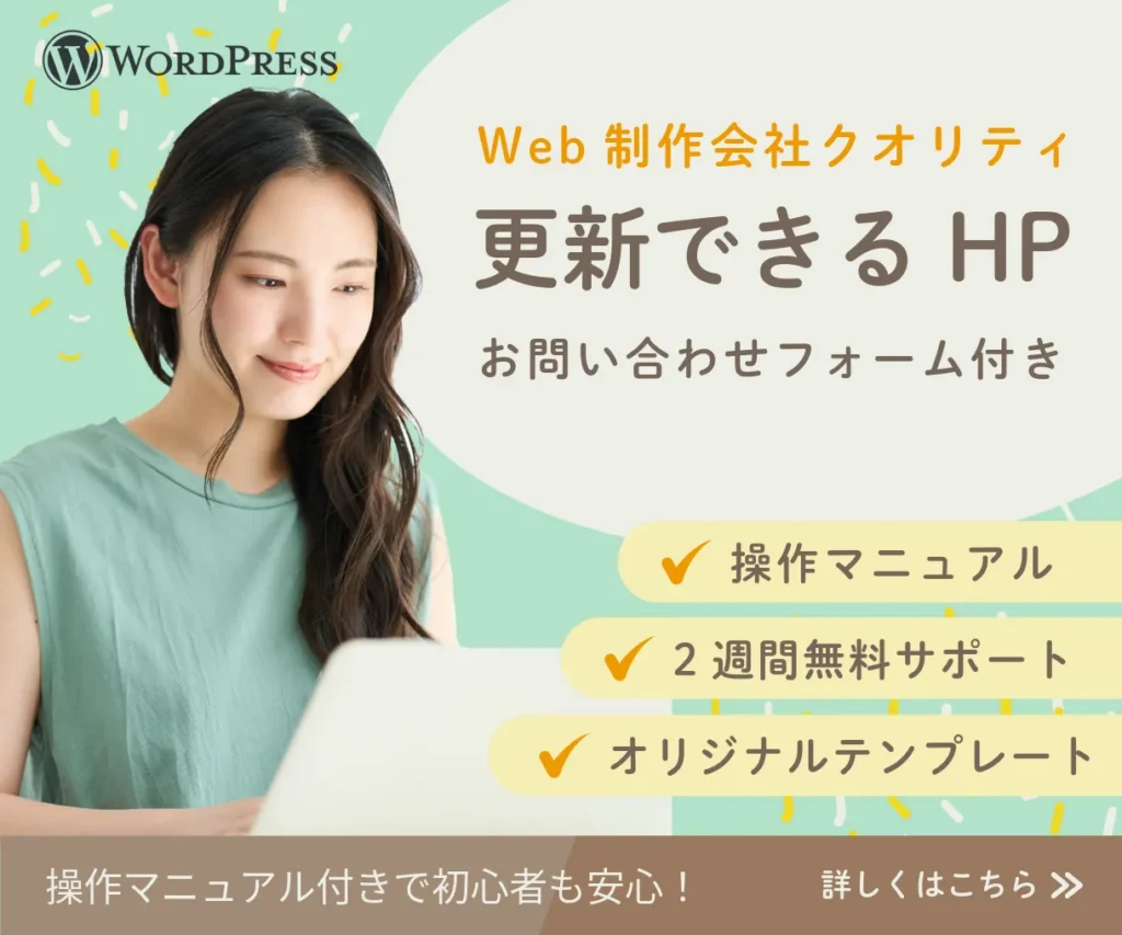 ココナラで自分で更新できるHP(WordPress)を高品質・低価格で提供しています。